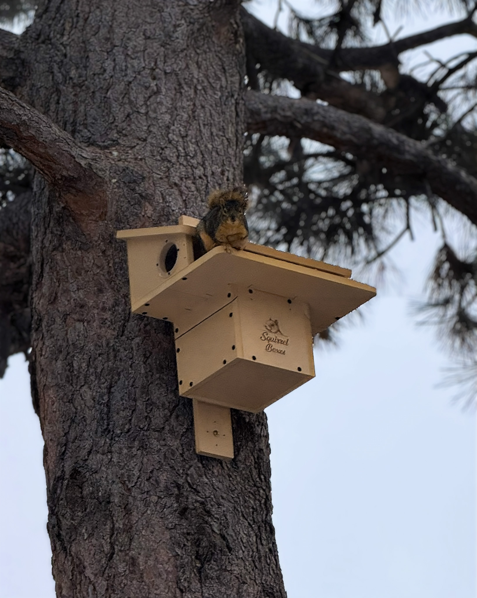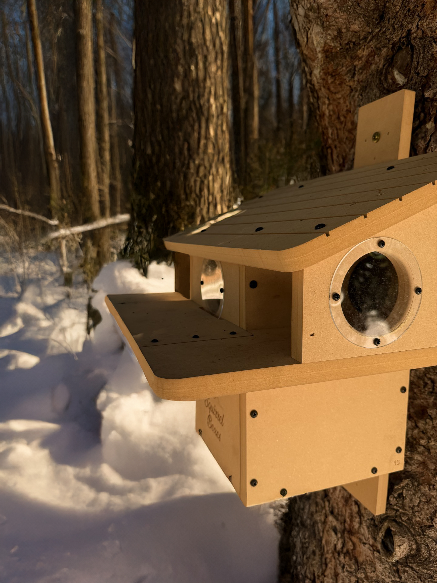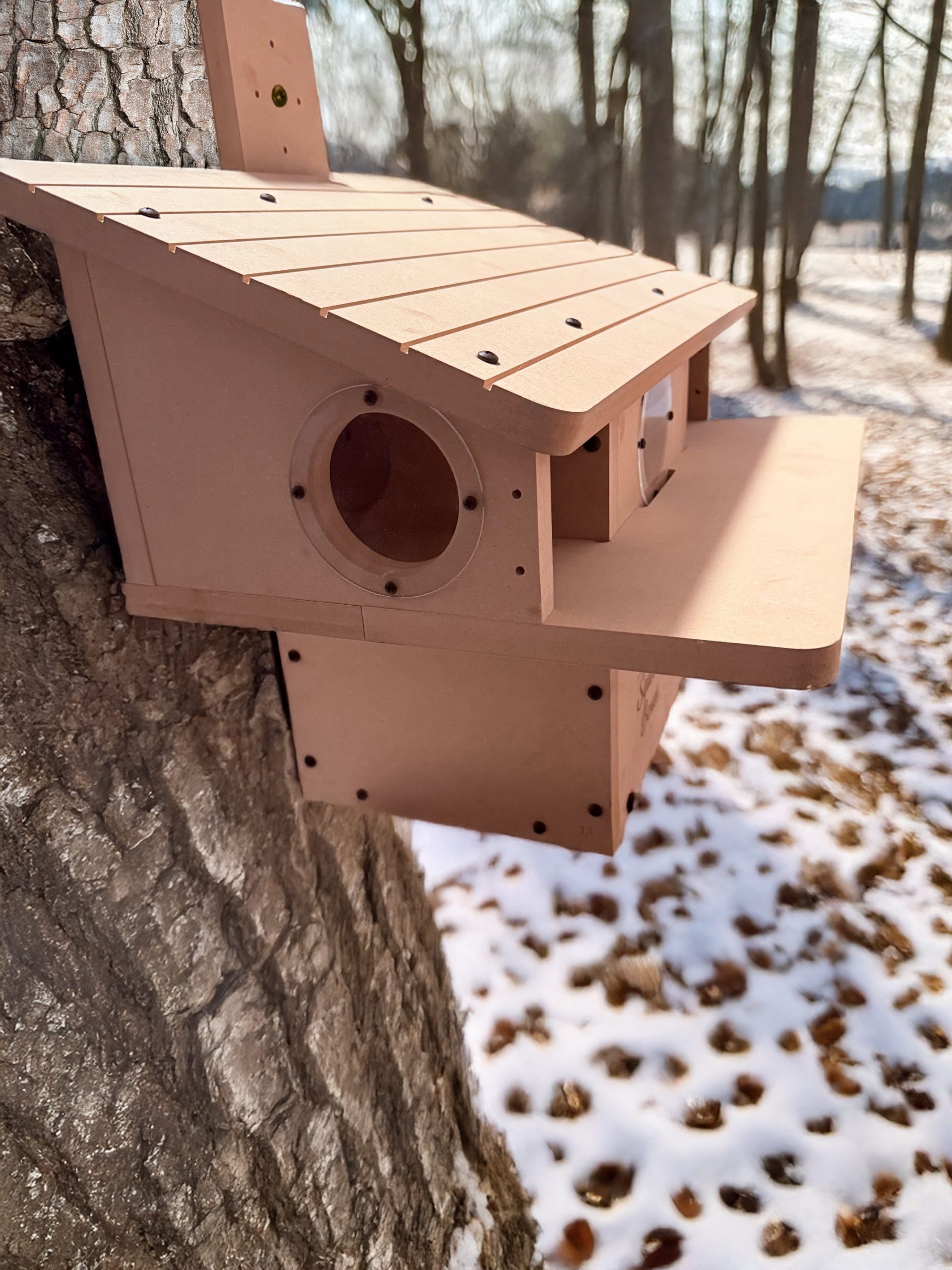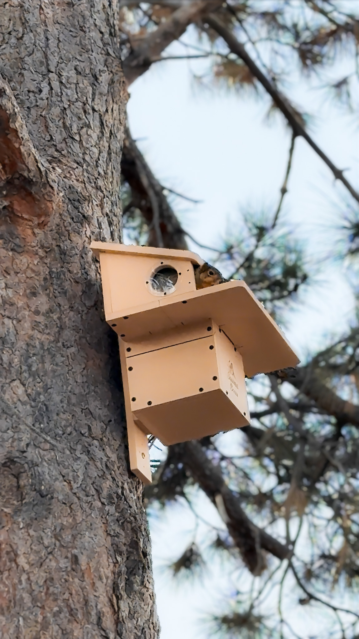 Porchside Paradise is a thoughtfully crafted, dual-entrance squirrel nesting box designed for comfort and security. Built from durable composite materials, it features two front entrances for easy access and quick exits, plus a charming porch perch where squirrels can lounge and take in their surroundings. With ample windows for a panoramic view and multiple predator-conscious protection features, it creates a safer, welcoming outdoor retreat. Assembly is required, and it’s not compatible with camera installation.
