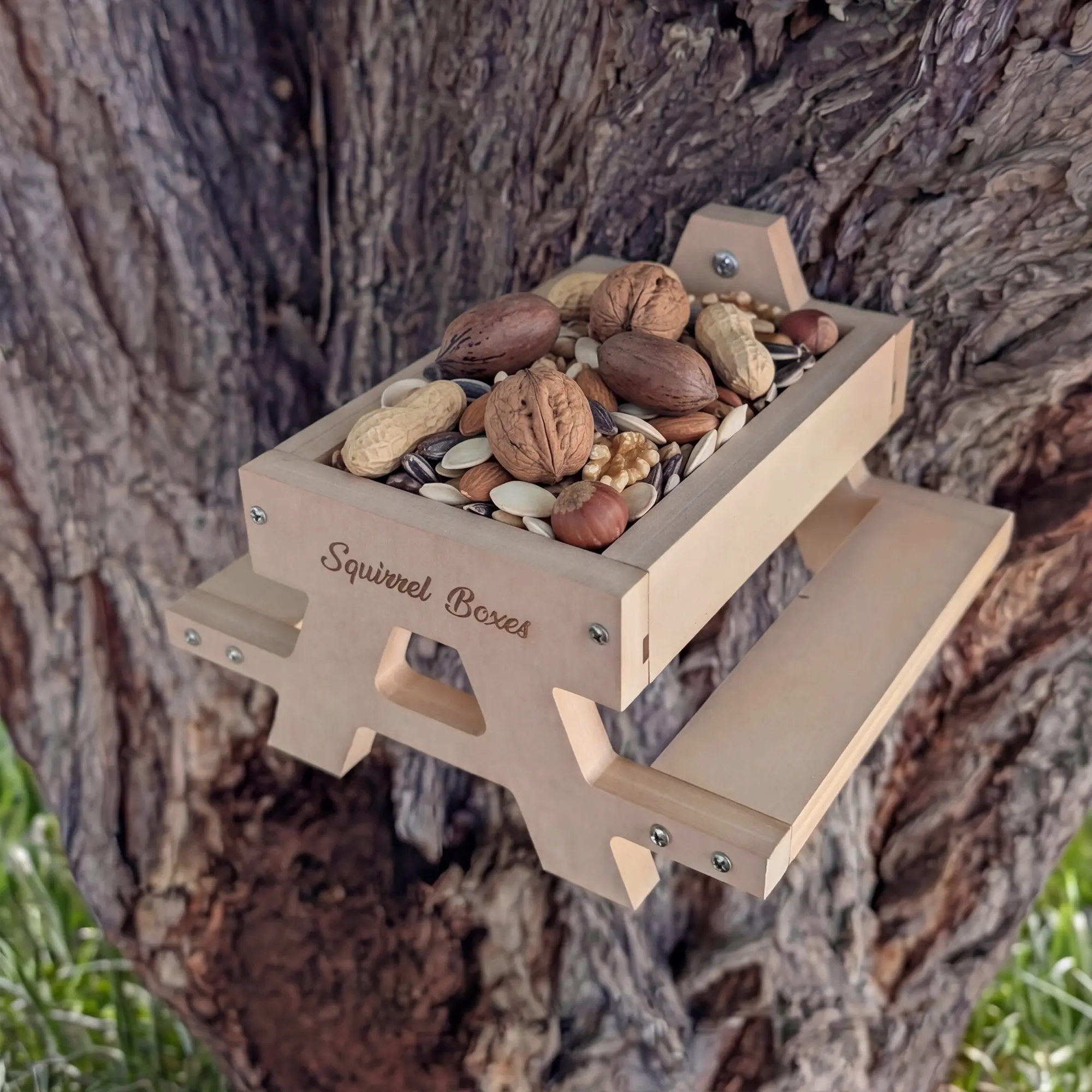 Meet The Nut Table, a squirrel picnic table feeder made from durable composite for long-term outdoor use. The open design makes it easy to fill and gives squirrels a natural place to sit and snack while you enjoy every visit up close. Simple to mount and built for everyday use, it creates a reliable feeding spot right in your backyard.