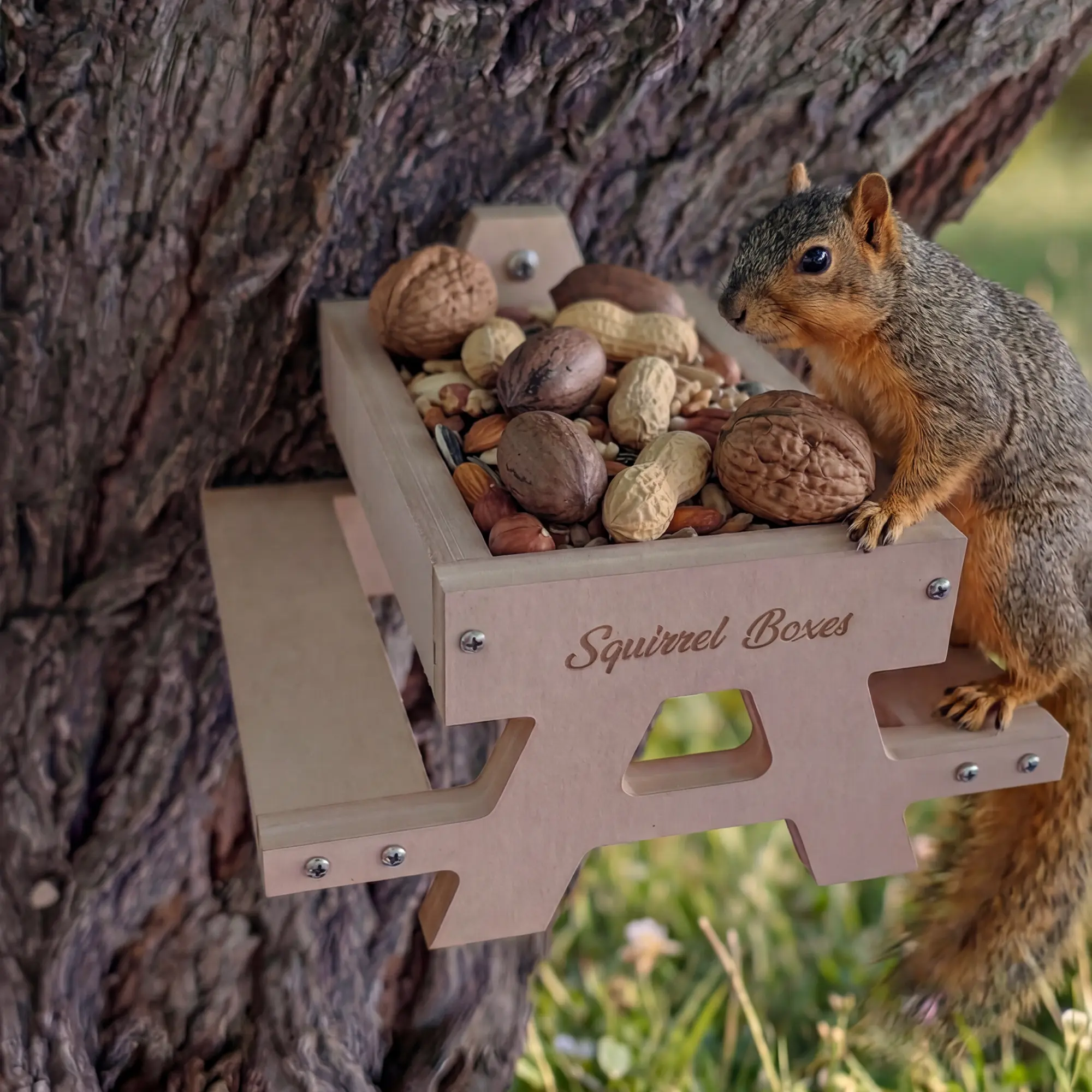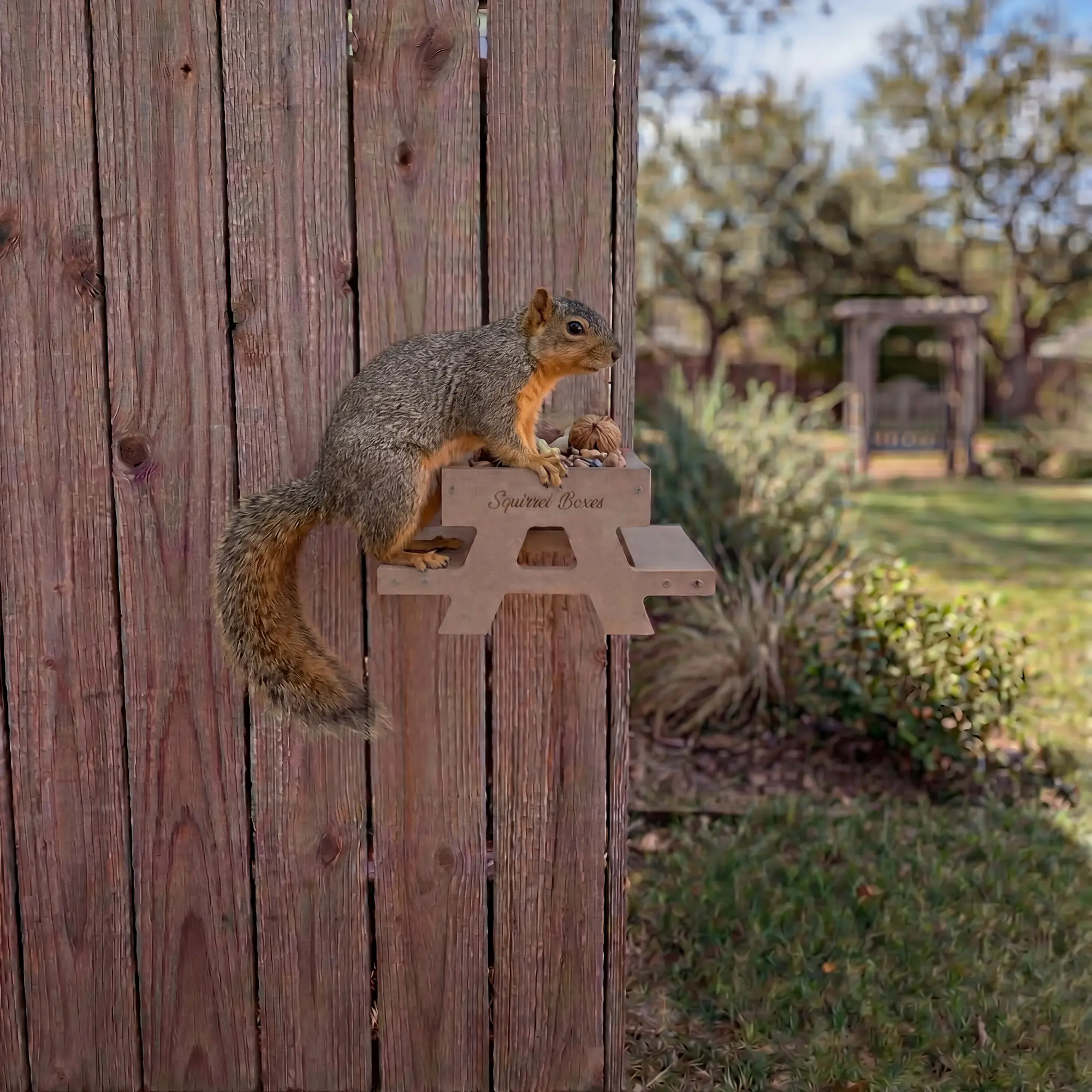 Mount it, fill it, and enjoy the show as squirrels gather, perch, and snack at their very own table.