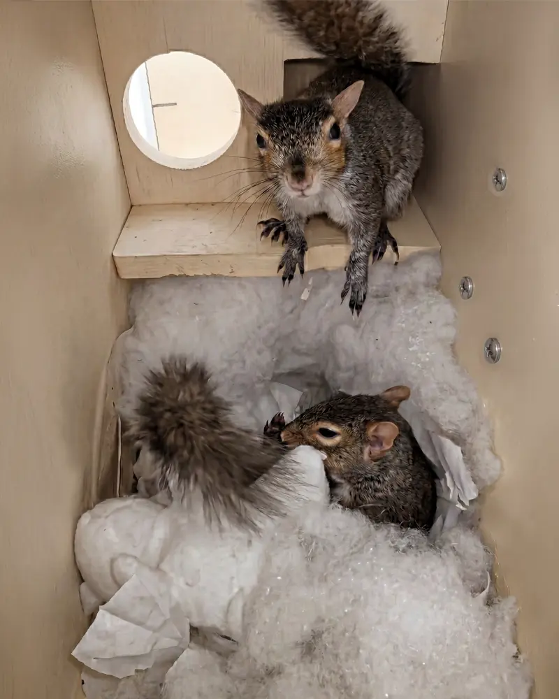 A small front porch leads to the main entrance, providing squirrels with a natural landing spot before they enter the box. Inside, a staircase design guides them upward into the main nesting chamber, where they can rest, raise young, or take shelter from the elements. Near the interior exit is a dedicated space where squirrels often store food, keeping their supplies close to the safety of home.